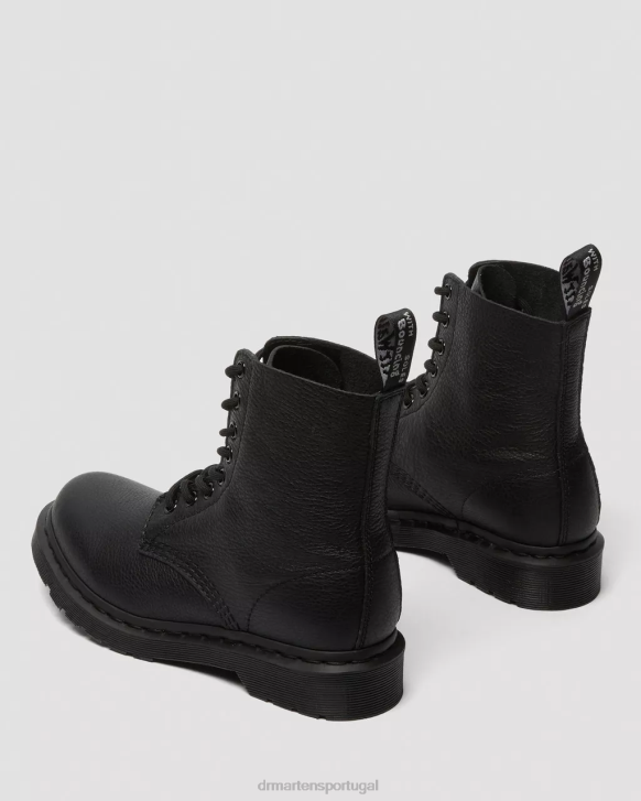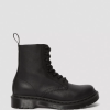 Detalhes, O 1460 Pascal Mantém Toda A História E Durabilidade Do Icônico E Original 8 Olhos – E Todo O DNA, Como Uma Presilha De Calcanhar Com Script, Costura Visível E Bordas Ranhuradas Em Uma Sola Com Amortecimento De Ar. E Agora é Servido Em Preto Monocromático Da Ponta Aos Pés, No Couro Virginia Supermacio E Inquebrável.