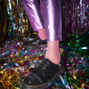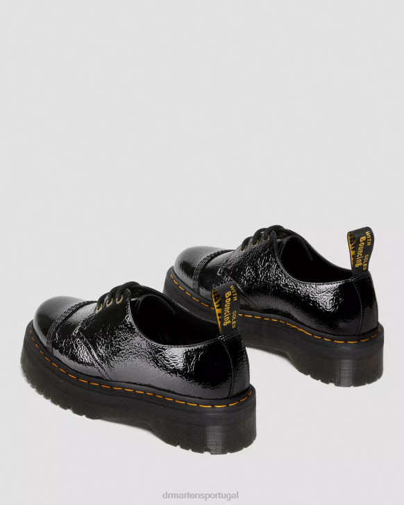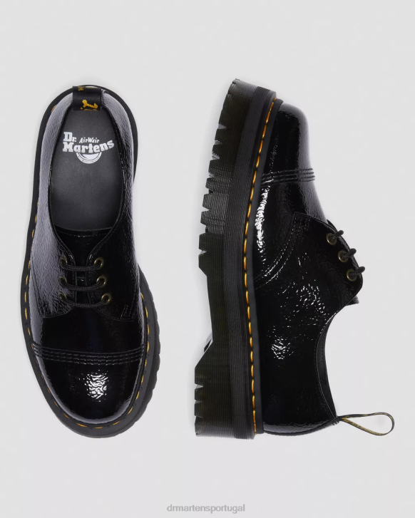 Detalhes Novos Na Formação. A Patente Desgastada Tem Uma Aparência Desgastada E Rachada Com Um Brilho Característico Intransigente. Nosso Sapato De Plataforma Quádrupla 1461 Retrabalhado Foi Aprimorado Com Uma Biqueira Costurada Puritana E Ilhós De Latão Antigo. Empilhados Em Nossa Sola De Plataforma Quádrupla Retrô De 1 7/8 Polegadas Com Um Piso De Comando Robusto.