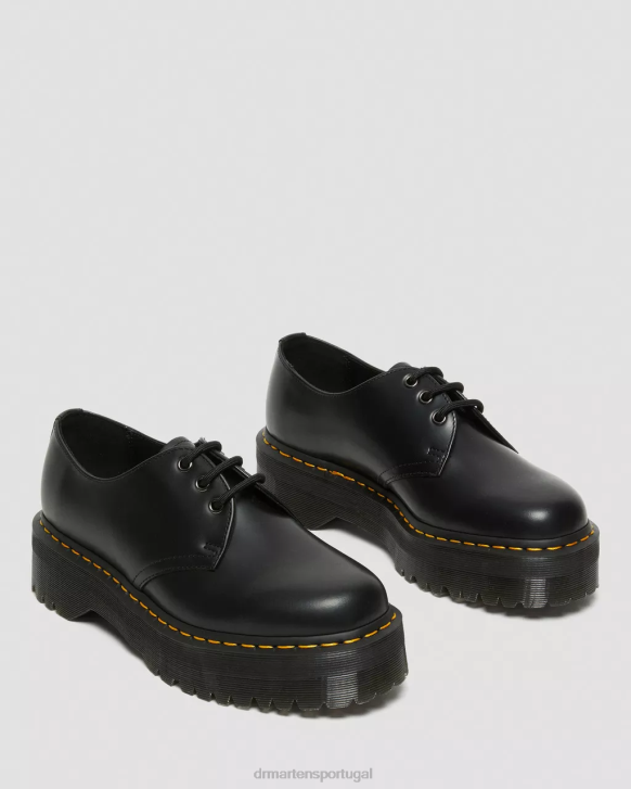Detalhes Nosso Sapato Clássico 1461 Atingiu Novos Patamares. Construído Em Nossa Plataforma Mais Alta Até O Momento, Nosso Quad 1461 Recebeu Um Retrabalho Poderoso. Os Sapatos São Feitos De Couro Liso Polido E Soldados No Lugar Com Nossa Inconfundível Costura Amarela.