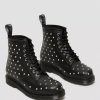 Detalhes Para O Hardcore Do DM. Essas Botas São Perfuradas Com Tachas Cônicas Prateadas – Uma Homenagem Aos Usuários De Documentos Que Usam Seus Calçados Há Décadas. Construídas Em Wanama, Um Couro Premium Refinado Com Brilho Acetinado, As Botas Com Tachas São Reforçadas Com Costura Debruada Tonal E Uma Presilha De Calcanhar Airwair Com Script.