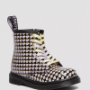 Detalhes Alto Brilho, Alto Impacto. Essas Novas Botas Infantis Elevam O Destaque A Um Nível Totalmente Novo. Impressos Com Corações Pastel Contrastantes, Eles São Colocados Em Uma Sola Dms Flexível Para Pés Em Crescimento E Equipados Com Ilhós Tonais, Bem Como Marcações Clássicas De Dm: Costura Amarela E Uma Alça De Calcanhar Airwair Com Script.
