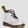 Detalhes Disco Crinkle é O Nosso Mais Recente Couro Metálico, Trazendo Todo O Brilho Do Glitter Com Maior Durabilidade Pronta Para Mini-rebelde. Revestidas, Com Uma Base Brilhante E Cintilante, Essas Botas Infantis São Equipadas Com Ilhós E Atacadores Pretos, Bem Como Nossas Marcações Clássicas: Costura Amarela E Uma Alça De Calcanhar Airwair Com Script. Eles São Colocados Em Uma Edição Menor De Nossa Sola Clássica Com Amortecimento De Ar, Construída Para Pés Em Crescimento.