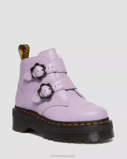 Devon Flor Fivela Botas Plataforma De Couro Dr. Martens Feminino 686r212 Calçado Lilás Moído Napa