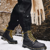 Detalhes Invadem A Temporada. Essas Botas Prontas Para O Inverno São Projetadas Para Suportar O Clima Difícil. Construídos Em Couro Wp Limpa-neve Que Resiste A Areia, Sal E Chuva, Eles São Colocados Em Nossa Sola Híbrida Antiderrapante De Design Exclusivo E Equipados Com Um Forro De Lã Quente Para Proteger Do Frio. Mais Do Que Uma Combinação Para Os Meses De Inverno, As Botas De Inverno Vêm Com Ganchos De Caminhada Dourados Antigos E Atacadores Listrados Amarelos. Costura De Debrum Amarelo E Uma Alça De Calcanhar Amarela Com Script Marcam-nos Como Dr. Martas.