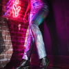 patente Desgastada – Um Pu- Couro Revestido Com Brilho Brilhante.