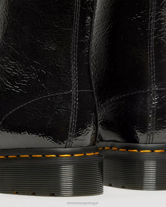 Detalhes Novos Na Formação. A Patente Desgastada Tem Uma Aparência Desgastada E Rachada Com Um Brilho Característico Intransigente. Esta Versão Retrabalhada De Nossa Bota 1460 Original De 8 Olhos é Decorada Com Ilhós De Latão Antigo Indiano E Finalizada Com Costura De Debrum Amarela Exclusiva E Uma Presilha De Calcanhar Com Script Airwair.