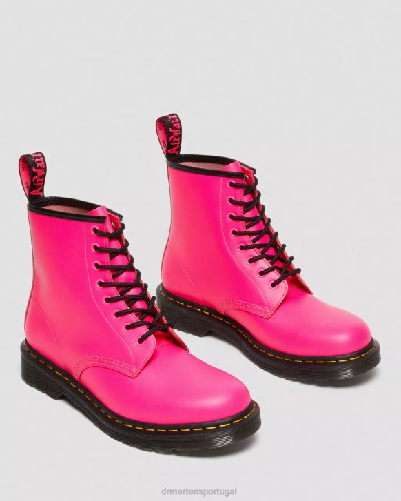 Botas De Couro Liso 1460 Com Cordões Dr. Martens Feminino 686r193 Calçado Rosa Liso