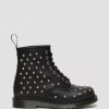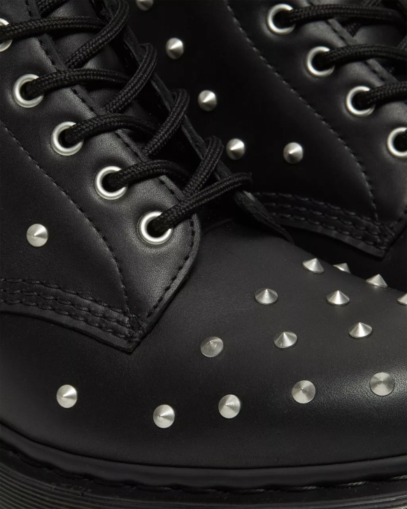 Detalhes Para O Hardcore Do DM. Essas Botas São Perfuradas Com Tachas Cônicas Prateadas – Uma Homenagem Aos Usuários De Documentos Que Usam Seus Calçados Há Décadas. Construídas Em Wanama, Um Couro Premium Refinado Com Brilho Acetinado, As Botas Com Tachas São Reforçadas Com Costura Debruada Tonal E Uma Presilha De Calcanhar Airwair Com Script.