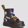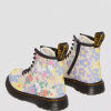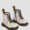 Detalhes A Versão Menor Da Nossa Bota Com Estampa Floral Sazonal Está Aqui Para Crianças Com Atitudes Descomunais. A Bota 1460 8-eye Recebe Uma Reformulação Ousada Com Nosso Floral Inspirado Em Arquivo Com Efeito De Serigrafia. Realçado Com Tons Pastéis Vibrantes Da Nossa Paleta De Verão. A Bota Floral Mash Up é Construída Em Couro Revestido Com Hidro E Pu Com Acabamento Liso Fosco. Equipado Com Um Zíper Fácil De Colocar E Tirar No Tornozelo Para Que Eles Possam Fazer Travessuras. Construído Na Versão Extra Flexível Do Nosso Ben Sole. Finalizado Com Cadarços Pretos Contrastantes E Gola. Assinado Com Uma Alça De Calcanhar Airwair E Nosso Icônico Ponto Amarelo.