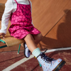 Detalhes Que A Nossa Equipa De Design Inspirou Nos Anos 70 Para Esta Versão Lúdica Da Nossa Clássica Bota 1460. Usando Serigrafia Para Dar Vida A Cogumelos, Samambaias E Flores Em Couro Lamper Envernizado Azul Vivo Com Acabamento De Alto Brilho. Coloque Em Nossa Sola Ben Extra Flexível. Estritamente Para A Próxima Geração De Aventureiros. Um Zíper Fácil De Colocar/tirar No Tornozelo Leva-os Onde Eles Estão Indo Mais Rápido. Marcado Como Dm Com Nosso Laço De Calcanhar Com Script E Ponto Amarelo Destacado.