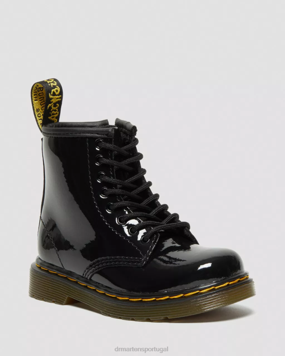 Botas Infantis De Couro Envernizado 1460 Com Cadarço Dr. Calçado Martens Kids 686r404 Preto Lucido & Patente Lamper