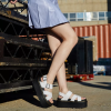 Detalha Nossa Sandália Voss Ii De 2 Tiras Pronta Para O Auge Do Verão. Um Design Elegante E Minimalista Construído Com Couro Athena Revestido De Pu Para Um Acabamento Suave E Macio. Para Aqueles Dias Fora Que Se Transformam Em Uma Noite Fora. Elevando-se Sobre Uma Sola Quad Zebrilus De 3 Polegadas, Para Elevação Máxima Com Peso Mínimo. 2 Fivelas De Metal No Tornozelo Proporcionam Um Ajuste Seguro E Confortável. Finalizado Com Nosso Exclusivo Ponto De Debrum Amarelo.