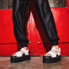 Detalha Nossa Sandália Voss. Agora Ainda Mais Alto. Apoiado Em Uma Sola Quádrupla Imponente E Construído Em Couro Hidro Com Duas Tiras Ajustáveis para Um Ajuste Confortável. Equipadas Com Ferragens Pretas, As Sandálias Plataforma Finalizadas Com Nossa Notável Costura Amarela.